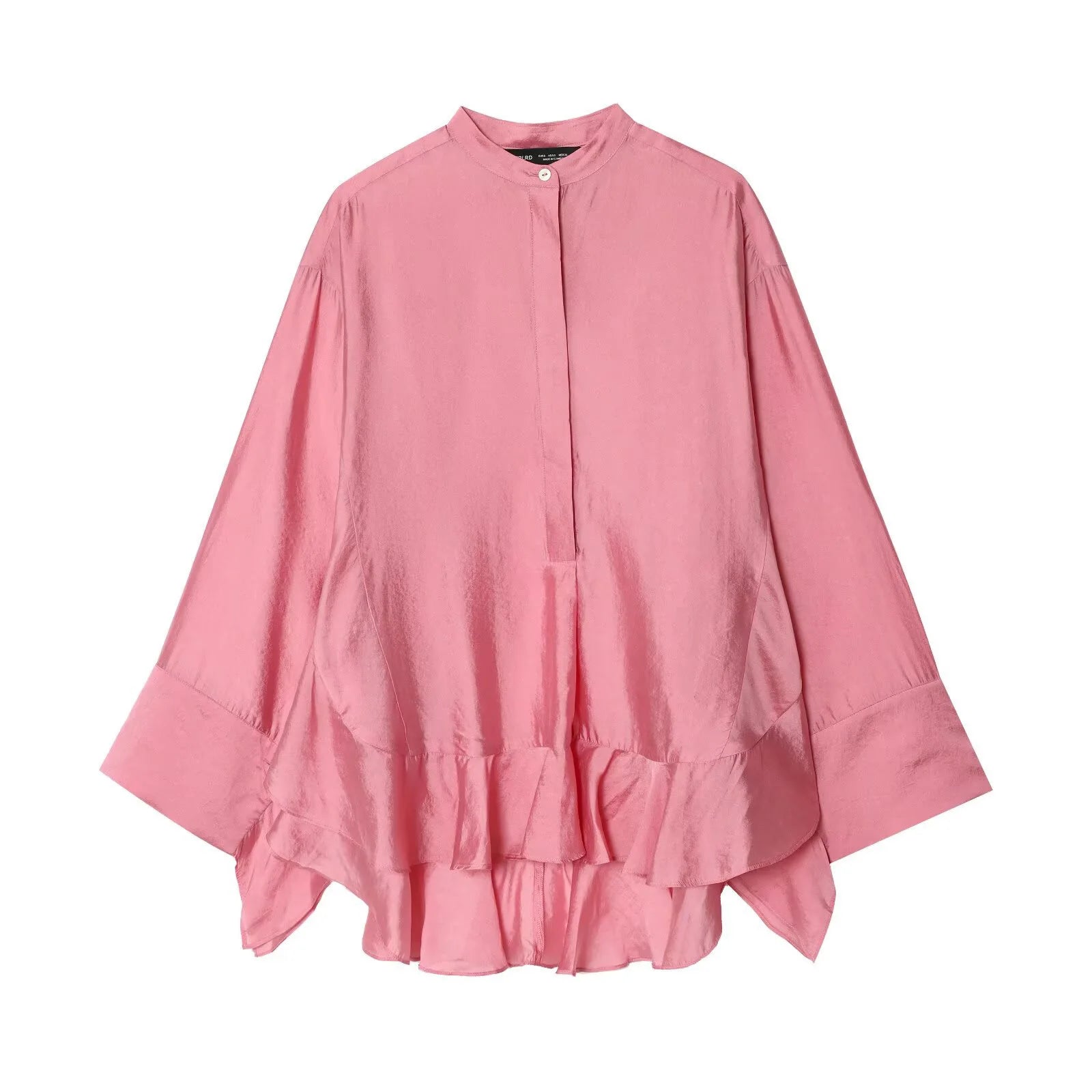 Voeg deze stijlvolle roze top toe aan je herfstcollectie en geniet van de combinatie van comfort en mode!
